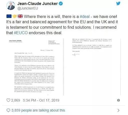 3910 一、脱欧进展又迎来好消息:欧盟与英国达成新的脱欧协议