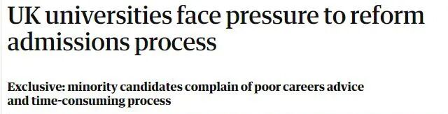 3.保持目前的时间表大致不变,但要多考虑贫困学生所面临的不利条件,重新考虑个人陈述的使用问题,并对申请成绩要求加大透明度。(即关注弱势背景的申请人)在接受英国媒体采访时,一位英国大学资深教育人士表示,正式认真考虑将“获得成绩后再发录取通知”作为未来的招生方案。