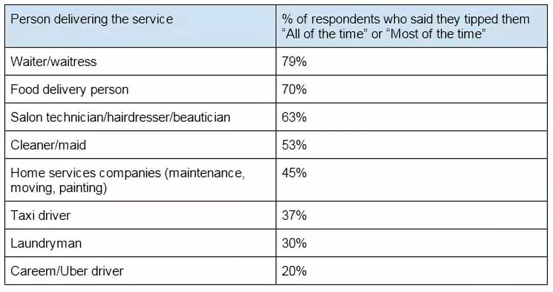 还有分析说,大部分顾客付小费的主要原因和他被服务的周到程度关系并不是很大,多数顾客是出于内疚和尴尬而不是感激的心理付小费的。