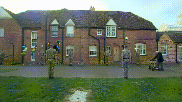 在这个特殊的时刻,约克郡兵团的年轻军人们也纷纷赶来,保持着两米安全距离,分别守卫在汤姆步行路线的两侧,表示致敬。