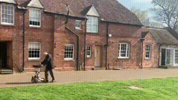为什么汤姆的努力会得到如此多的关注呢?当你看到这位老爷爷弓着腰身,拄着四脚拐杖,步履蹒跚地在自家院子里,艰难又平稳地踱步的样子,或许就能理解。对于这样一位身体状况非常不理想的老人来说,要完成哪怕仅仅一圈的挑战也是极其困难的。