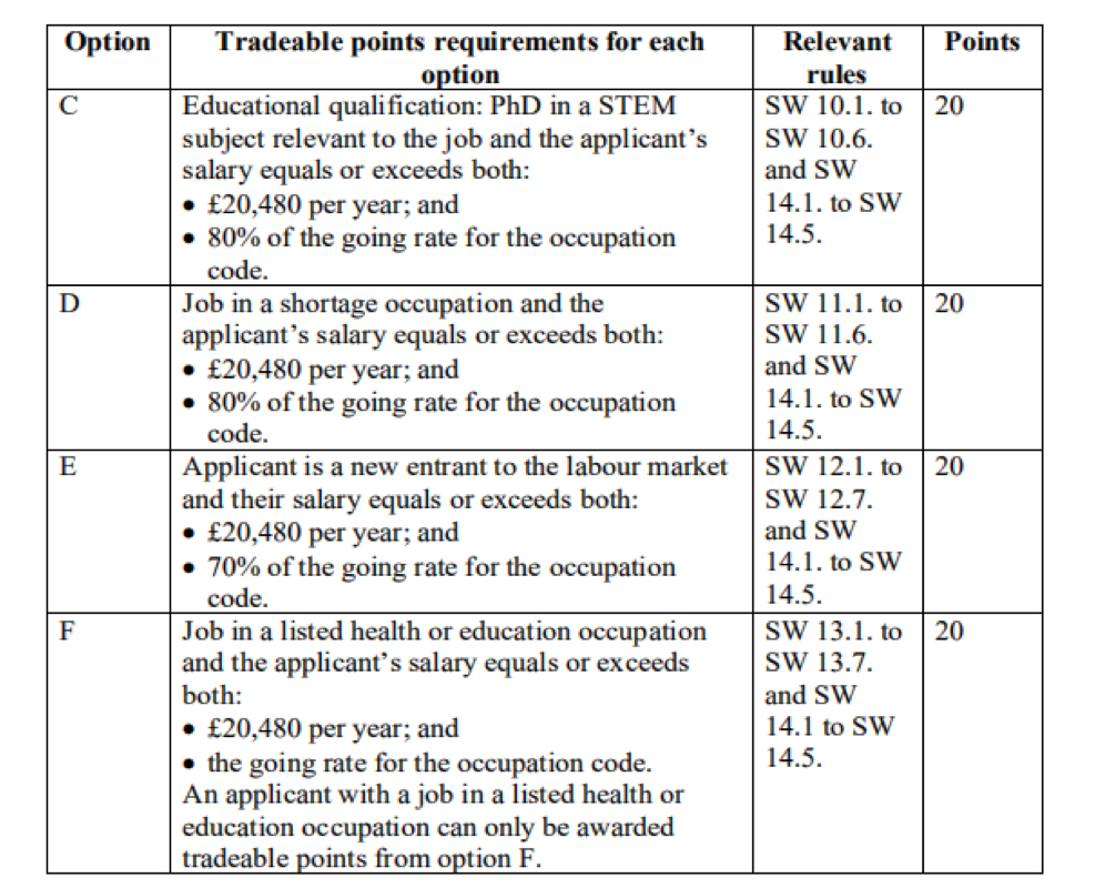 也就是说,虽然说是打分,但是所有申请人能且只能得到70分!相比于澳、加把每一年的年龄、工作管理经验、婚姻状况及配偶学历和语言水平都能细化成分数的打分体系来说,英国打分的难度甚至不及澳洲和加拿大任何一个州(省)。这也可以理解,毕竟英国正处在从欧盟签证体系下独立出来的转型期,需要时间摸索,也一定会涌现出很多的机会,只要体系构建起来,条件都可以逐步的细化和完善,如果您懊悔没有在05年左右申请到澳洲、加拿大宽松的移民条件,近几年的英国就不要再错过了。2. 放宽语言要求,将GCSE、A-level、马耳他护照、爱尔兰本科学历等纳入到了免雅思范畴;3. 放宽生活费存款时限要求,主申及配偶子女生活费标准变更;2. 放宽生活费存款时限要求,主申及配偶子女生活费标准变更。2. 一般工资门槛从30,000英镑降低到25,600英镑;3. 在满足其他要求(包括具有与工作相关的博士学位)的前提下,工资的条件可换成:具有与该工作相关的STEM学科的博士学位资格;从事短缺工作的工作;或从事在列出的健康或教育职业工作;4. 35,800英镑的永居申请门槛将被取消,取而代之的是25,600英镑或目前的职业薪资水平。2. 对合格的学术和研究角色类型的定义,该定义正在扩展。1. 持旅游签者之前最多只能学习30天,目前修改后最多可以学习6个月。这也意味着以前必须申请短期学生签证才能学习30天至6个月的申请人现在可以申请访问签证。对于那些想要学习6到11个月的学生,仍然有一个短期学习途径。此外,想学习娱乐课程的游客仍然限于30天。2. 志愿服务不再需要“与拜访的主要原因无关”,尽管它应限于30天;3. 学术访问者将拥有更大的自由度,可以申请将其在英国停留的期限延长至12个月。1. 生活费要求:现在修改为伦敦内的学生每月为1,334英镑,伦敦以外的学生为1,023英镑。